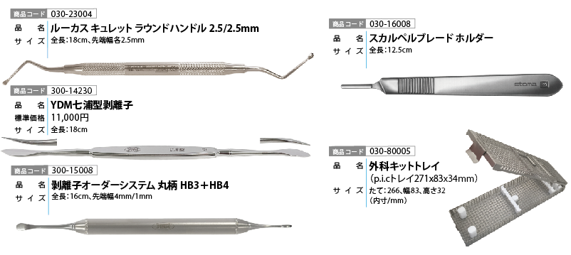 販売名:STM歯科用開口器 一般的名称:歯科用開口器 一般医療機器 届出番号:13B1X00053C00003 販売名:STM治療用ピンセット 一般的名称:ピンセット 一般医療機器 届出番号:13B1X00053C00008販売名:STM持針器 一般的名称:持針器 一般医療機器 届出番号:13B1X00053C00005 販売名:STMハサミ 一般的名称:はさみ 一般医療機器 届出番号:13B1X00053C00006 販売名:STM歯科用キュレット 一般的名称:歯科用キュレット 一般医療機器 届出番号:13B1X00053C00023 販売名:STMナイフハンドル 一般的名称:ナイフハンドル 一般医療機器 届出番号:13B1X00053C00016 販売名:剥離子オーダーシステム 一般的名称:歯科用起子及び剥離子 一般医療機器 届出番号:11B1X1000642D033 販売名:粘膜剥離子 一般的名称:歯科用起子及び剥離子 一般医療機器 届出番号:11B1X1000642D013 販売名:外科ピンセット 一般的名称:ピンセット 一般医療機器 届出番号:11B1X1000636D011 販売名:歯肉バサミ 一般的名称:歯科用歯肉はさみ 一般医療機器 届出番号:11B1X1000635D201