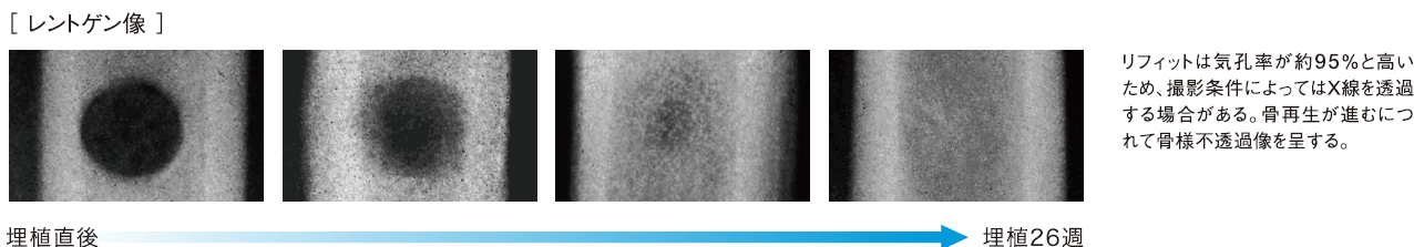 生体内の骨リモデリングサイクルに取り込まれ、骨組織へ置換されます。